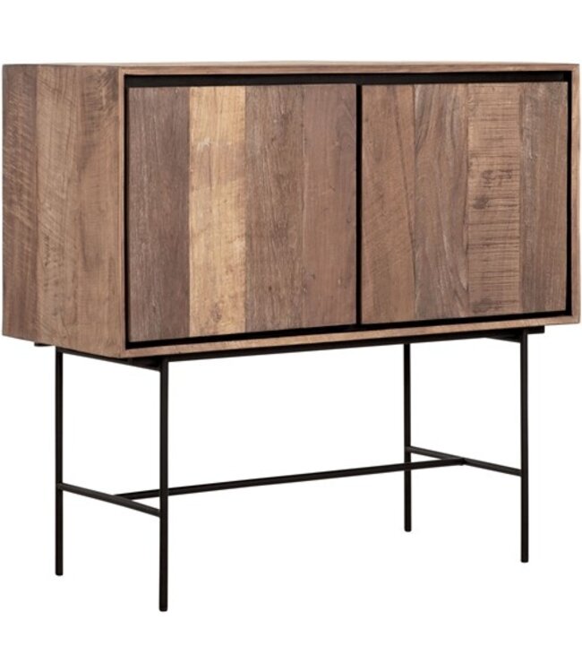 Zoek je een uniek en stoer Dressoir welke duurzaam vervaardigd is? Bekijk dan deze collectie meubels uit de serie METROPOLE van DTP Home. Deze serie is gemaakt van duurzaam vervaardigd gerecycled teakhout. Het meubel is deels afgewerkt met een slank stoer metalen frame hetgeen een industriële en stoere look geeft. Door het hout houdt het meubel wel zijn warme uitstraling. De deuren zijn mooi afgewerkt en lichtjes afgerond hetgeen de kast een echte mooie uitstraling geeft. Doordat de deuren niet aansluiten, zie je het zwarte frame er mooi tussendoor. Het dressoir is lekker compact met twee deuren waarachter je heerlijk je spullen uit het zicht kunt opbergen.