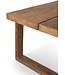Icon is ambachtelijk vervaardigd uit het mooiste gerecyclede teakhout. Het doorleefde hout heeft diverse nuanceverschillen in kleur. Dat geeft de tafel zijn karakter. Het blad bestaat uit twee lengte-delen, die een klein stukje uit elkaar gezet zijn, waardoor er een smalle spleet door het midden loopt. Dit subtiele detail versterkt de strakke lijnen van deze gave tafel.