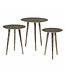 Set van drie metalen ronde bijzettafels zilverkleurig