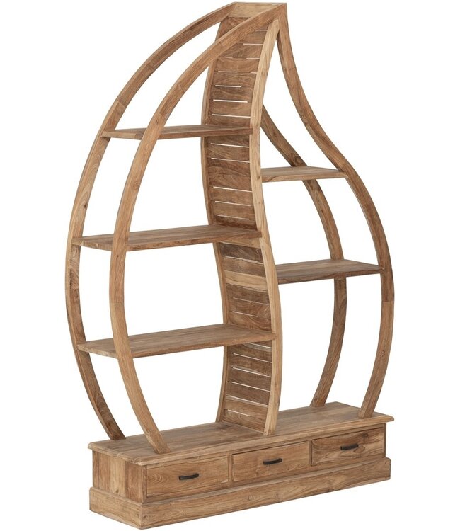 Wandrek Drop is gemaakt van gerecycled teakhout, afkomstig uit oude Indonesische huizen. Lokale vakmensen selecteren het hout zorgvuldig en verwerken het ambachtelijk tot dit unieke meubel.