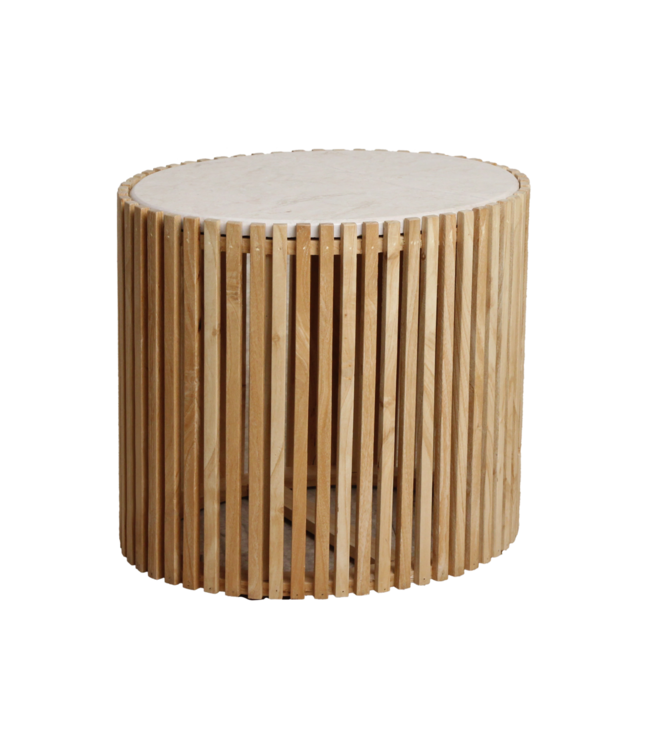 Materiaal: Marmer (blad), Sungkai hout (onderstel)