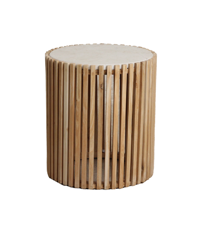 Materiaal: Marmer (blad), Sungkai hout (onderstel)