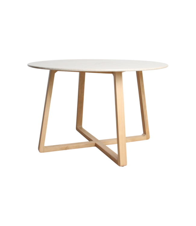 De ronde vorm maakt deze tafel perfect voor gesprekken, borrels of diners waarbij iedereen elkaar aankijkt. Het onderstel is gemaakt van duurzaam Sungkai hout: licht van kleur en subtiel in nerf – perfect in een Scandinavisch of modern interieur.