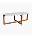 Breng elegantie en karakter in je interieur met de Luna Cross salontafel. Deze ovale blikvanger combineert een wit gepolijst marmeren blad met een warm, kruisvormig onderstel van massief mangohout. Een perfecte balans tussen verfijning en natuurlijke charme.