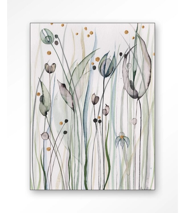 Deze acquarel van subtiele grasplanten brengt een natuurlijke, serene sfeer in je interieur. Het is een rustige afbeelding in groen- en grijstinten. Door deze kleuren past het doek praktisch overal en is gemakkelijk te combineren met andere kleuren en stijlen.