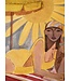 Breng je kamer in een zomerse sfeer met dit vrolijke wandkleed, ontworpen door de kunstenares Mimi Opdam. De friswarme geeltinten van de zonnebloem, die als de zon op de achtergrond staat, de zonnende dame onder de parasol in het gele badpak en gebruinde huid, brengen je altijd in een goede stemming.